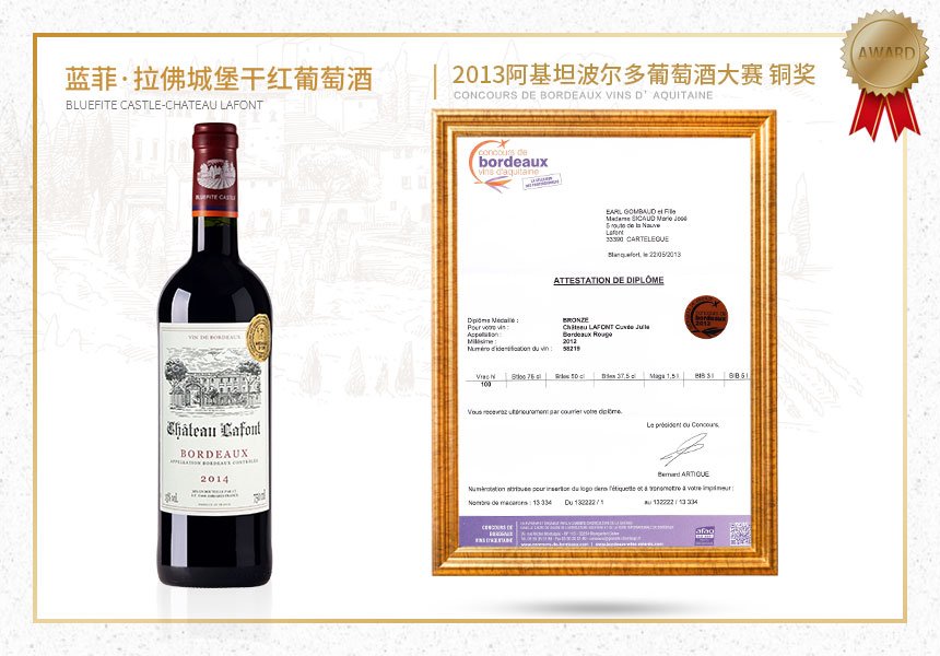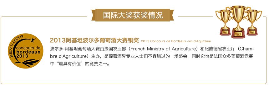 2013阿基坦波爾多葡萄酒大賽銅獎(jiǎng)