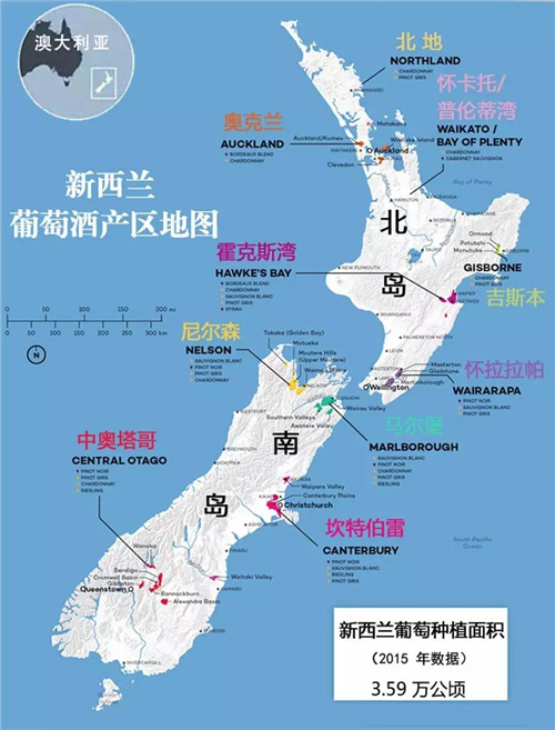 葡萄酒特色:作為新西蘭的新興產區,這里的葡萄酒及產區面積正處于不斷發展的狀態。
