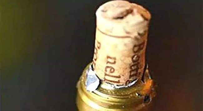生產環節軟木塞沒壓好:若葡萄酒在灌裝時機器故障,軟木塞沒完全壓進去,看起來也像是自然爆塞。