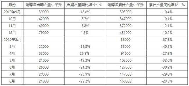 近一年中國葡萄酒產(chǎn)量統(tǒng)計(jì)表
