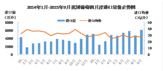 據海關數據統計,今年前三季度中國累計進口葡萄酒為4.3億升,比去年同期增加46.4%;進口平均價格為每升28.3元,下跌16%。9月當月進口6126萬升,同比增加78.4%,環比增加28.6%。