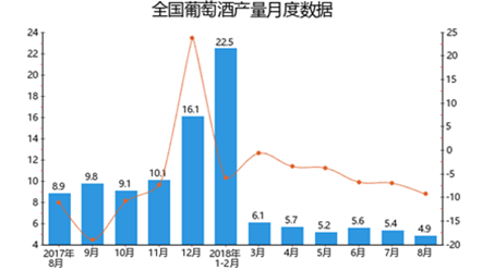 • 據(jù)研究機構(gòu)發(fā)布的2018年1-8月全國葡萄酒產(chǎn)量統(tǒng)計報告顯示,國產(chǎn)葡萄酒總產(chǎn)量已連續(xù)4年下跌,較產(chǎn)量高峰年減產(chǎn)近三成,而葡萄酒進口量逐年增長,國內(nèi)市場容量遠(yuǎn)未到峰值,對此專家有不同意見。 國產(chǎn)葡萄酒總產(chǎn)量已連續(xù)4年下跌,較產(chǎn)量高峰年減產(chǎn)近三成 國家統(tǒng)...