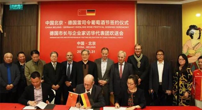 • 近日,德國市長與企業(yè)家訪華團(tuán)一行在圓滿完成了北京考察和調(diào)研工作后,來到王府井全聚德紫云花廳,就“德國雷司令葡萄酒節(jié)”落戶北京相關(guān)事宜進(jìn)行了座談,會后中德雙方代表還舉行了“德國雷司令葡萄酒節(jié)”簽約儀式。...