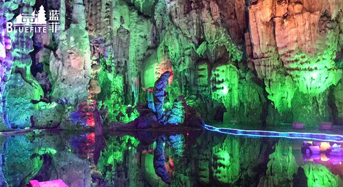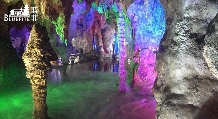 拓展之旅的第一站,就是跟隨導游參觀當地以其雄、奇、壯而著稱的風景名勝——寶晶宮溶洞。溶洞共分四層,共有72洞,洞洞相通;藍菲團隊結伴而行,共同觀賞大自然的鬼斧神工!燈光映襯下的寶晶宮溶洞熠熠生輝,洞內高大寬闊,雄偉壯觀,石筍、石柱林立,石花、石幔千姿百態,石鐘乳玲瓏剔透,絢麗多姿,令藍菲伙伴們流連忘返,嘆為觀止,仿佛踏進了一個仙境。